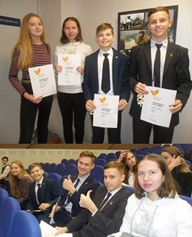 Ученики гимназии: Тимшин Михаил (11б), Добромыслова Арина (10б), Клейн София(9а), Никулин Кирилл(8б)