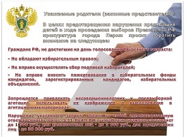 В целях предотвращения нарушения прав Ваших детей в ходе проведения выборов Президента РФ прокуратура города Перми просит обратить внимание на следующее: