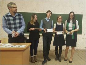 20 декабря в Органном зале состоялась церемония награждения победителей городской молодежной историко-просветительской игры «Magistra Vitae» по теме «Подвиг последних Романовых». Команда учащихся 10-11-х классов в составе Панкратова Игоря, Годовалова Олега, Покровского Якова, Рудакова Степана, Тюняткиной Любови стала победителем в номинации "Интеллект и культура".
