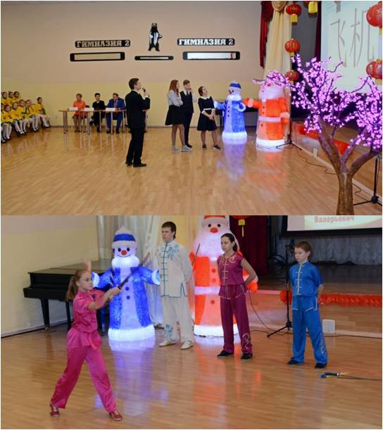 2 февраля в нашей гимназии прошла ежегодная этнокультурная акция «Восток встречает Новый год», приуроченная к встрече Нового года по лунному календарю. На этот раз акция проходит под общим названием «Встречаем огненного петуха». На празднике гости и участники узнали об истории и особенностях встречи Нового года по Лунному календарю. В программе – познавательные конкурсы и игры, выступления спортсменов, чайная церемония, творческие конкурсы и развлекательные программы. Свои поздравления ученикам и гостям направили зарубежные школы-партнеры гимназии из Китая, США и Канады.