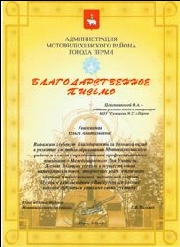 Администрация Мотовилихинского района города Перми выражает глубокую благодарность ЦЕПЕННИКОВОЙ ОЛЬГЕ АНАТОЛЬЕВНЕ, учителю русского языка и литературы, за большой вклад в развитие системы образования района и в связи с празднованием профессионального праздника – Международного Дня Учителя.